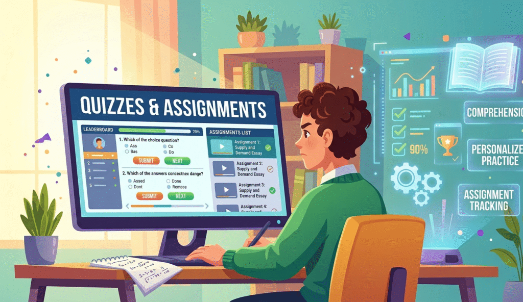 - Dashboard with all lessons, quizzes, and assignments.